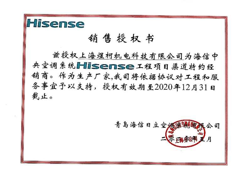 今天上午海信日立中央空調(diào)上海公司銷售來(lái)我司,帶來(lái)了銷售授權(quán)書(shū)。