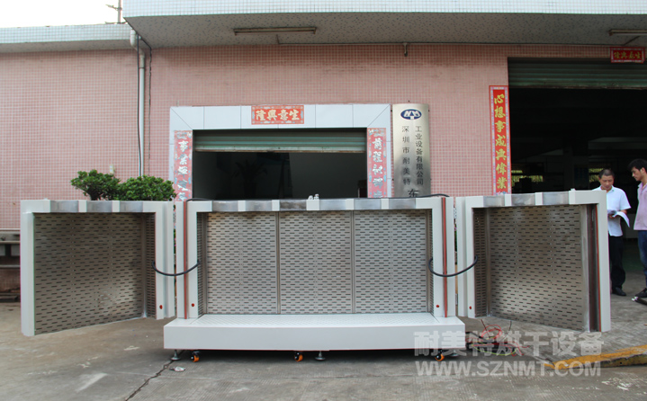 內膽材質采用1.5㎜厚SUS#304鏡面不銹鋼板制做,不生銹,使爐內清潔、無塵。內膽尺寸:寬2.2米,高1.1米,深0.45米。內膽四周鋪100mm厚高溫隔熱棉,門邊四周增加耐高溫密封硅膠,使爐外溫度不燙手。