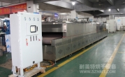 2、外形尺寸(約):長13000mm*高1800mm*寬2400mm,地面到網帶的高度為1000mm;進料區(qū)1000mm,升溫區(qū)長500mm,恒溫區(qū)長10000mm(分5段均可獨立控制),出料區(qū)1500mm;