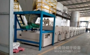 2、外形尺寸(約):總長(zhǎng)26500*高1550*寬2100mm;進(jìn)料部分長(zhǎng)1500mm,烘干部分長(zhǎng)20000mm,出料部分長(zhǎng)2000mm,冷卻部分長(zhǎng)3000mm;進(jìn)料處輸送帶離地高980mm;